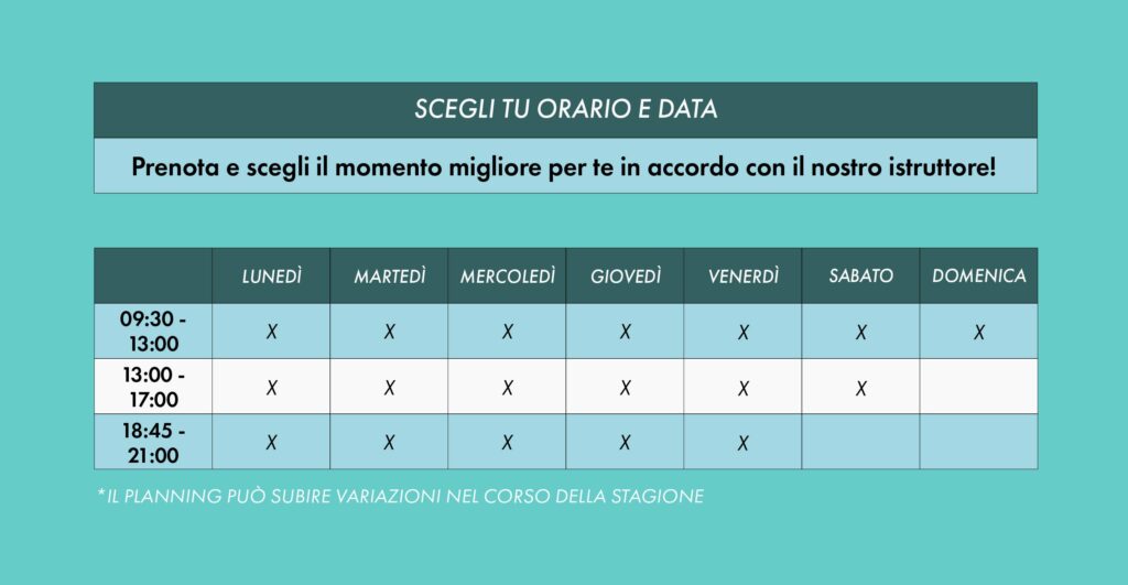 Grazie al supporto dell’acqua e alla guida del nostro istruttore, ogni partecipante potrà seguire un programma personalizzato, costruito sulle proprie esigenze e capacità.