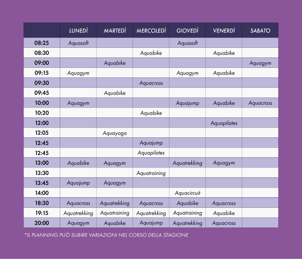 La ginnastica in acqua, adatta anche per chi non sa nuotare, è indicata per tutti: l’acqua permette di lavorare in assenza di gravità senza stressare le articolazioni. Con i corsi di Aquafitness Aquamore dimagrisci, aumenti la resistenza fisica e abbassi i livelli di stress.