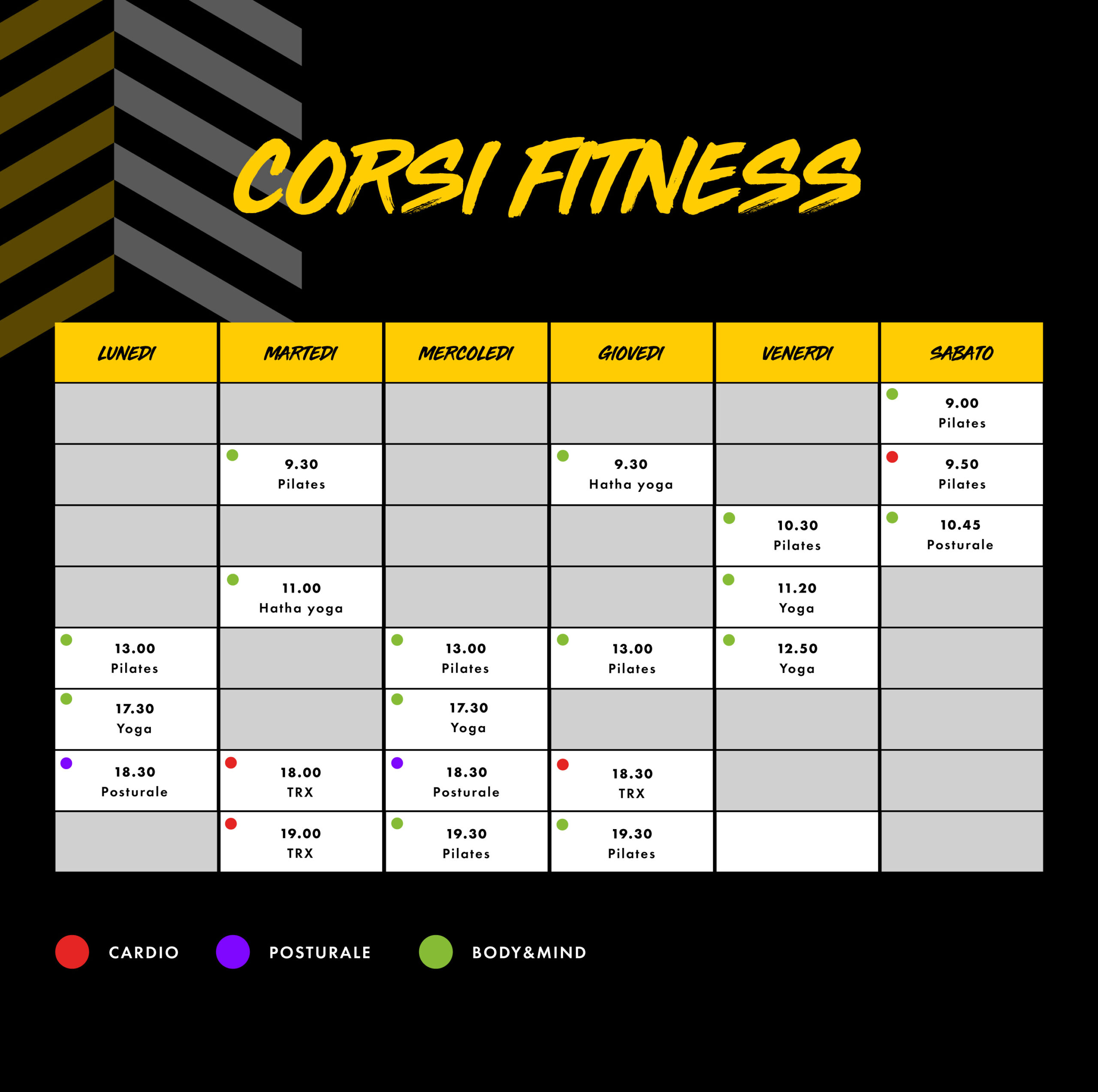 Gli orari dei corsi possono variare.